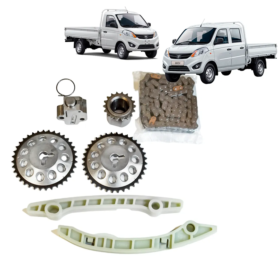 El kit de distribución por cadena de 7 piezas para Foton Midi es un conjunto esencial para el funcionamiento sincronizado del motor, encargado de coordinar el movimiento entre el cigüeñal y los árboles de levas.